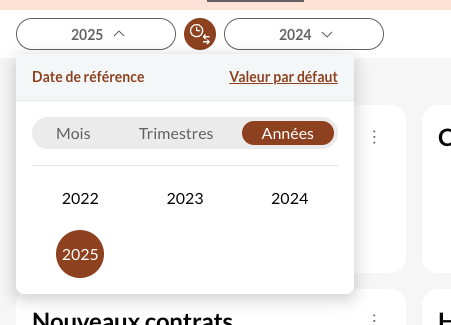 Choisissez l'année de votre choix à afficher sur vos tableaux de bord et l'année à comparer :